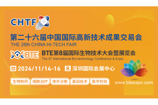 第二十六届中国国际高新技术成果交易会(简称:高交会)经国务院批准,由深圳市人民政府主办,将于2024年11月14-16日在深圳国际会展中心举办,展览面积约40万平方米,预计将有来自100余个国家和地区的5,000余家知名企业与国际组织参展。bte第8届国际生物技术大会暨展览会(bte 2024)作为高交会专业展区之一,聚焦生物制药、细胞治疗、体外诊断、基因技术、医学检验等领域的前沿技术与应用,是粤港澳大湾区一年一度备受举荐的生物产业盛会,已形成规模和极大的影响力,预计将有300 国内外品牌企业和上万种前沿技术产品震撼登场,共享高交会超50万人次的专业观众,目前报名的观众中已有超3万的意向采购商,同期将举办多场高峰论坛,诚邀超60位国家级权威专家、国际药企领袖及生物技术精英共襄盛举。致力于打造集品牌展示、学术交流、精准供需对接、高效贸易合作于一体的高水平科技创新载体和平台。
