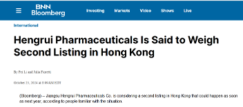 据海外媒体彭博社报道,江苏恒瑞医药股份有限公司正在考虑明年在香港进行第二次上市。