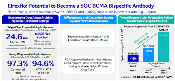 该药物在今年上半年带来1.45亿美元销售收入,q2收入8500万美元,同比增长280%,快速在日本等新市场占领份额,辉瑞认为elrexfio有望成为bcma双抗标准疗法。