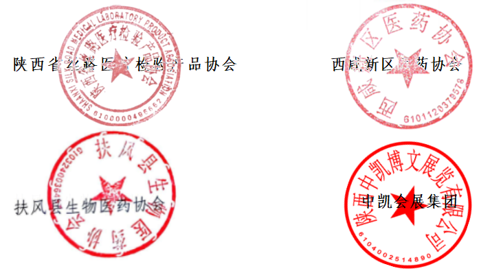 陕西省医药协会、陕西省健康管理行业促进会、陕西省医药质量协会、陕西省丝路医疗检验产品协会、陕西省医疗器械协会、西咸新区医药协会、扶风县生物医药协会、中凯会展集团。