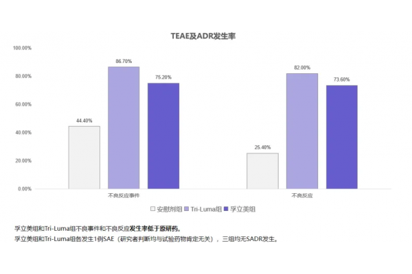 与此同时,在安全性维度,孚立美®不良反应发生率低于tri-luma,实现了疗效与安全性的双重提升。