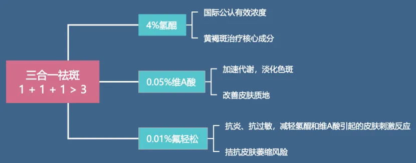 其实,“kligman三联疗法”是国际公认的黄褐斑外用治疗“金标准”——即使用4%氢醌 0.05%维a酸 0.01%氟轻松。