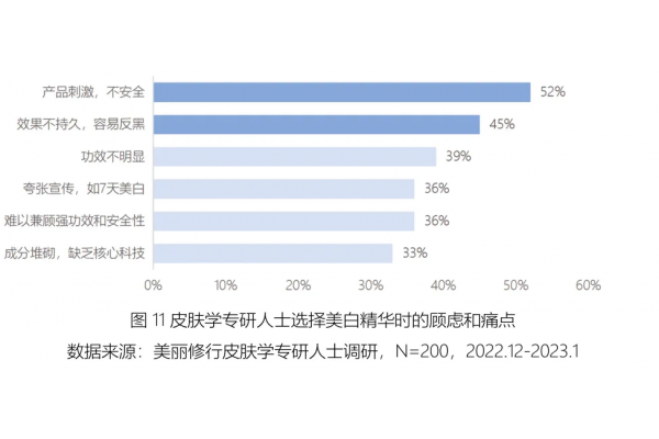 尽管市场空间较大,但现有治疗手段显得“力不从心”,比如效果是否持久、副作用等问题。《2024年美白市场线上消费与行业洞察报告》揭示了这一矛盾,“效果”是关注度top1因素;在顾虑和痛点方面,消费者最在意的是“是否刺激、反黑”。