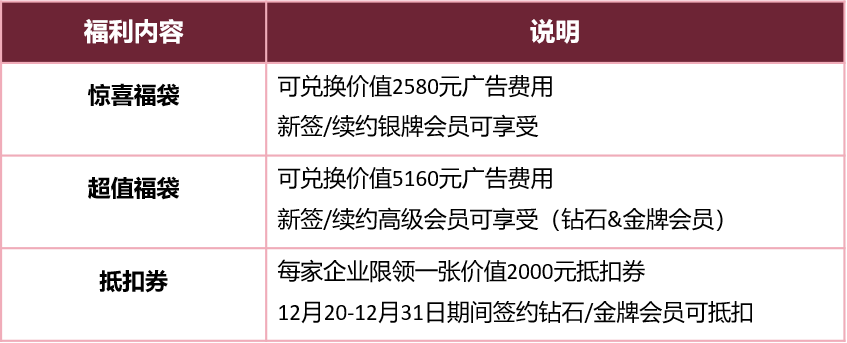 福袋说明:福袋所含广告费用仅限兑换平台广告位,不能抵扣其他费用。