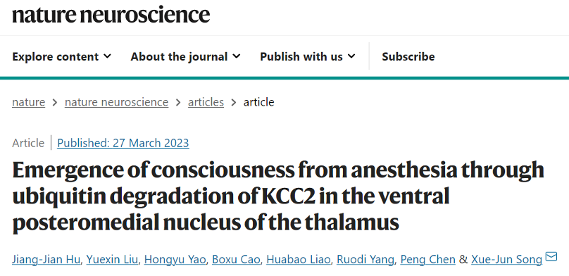 南方科技大学宋学军团队在 nature neuroscience 期刊发表了题为:emergence of consciousness from anesthesia through ubiquitin degradation of kcc2 in the ventral posteromedial nucleus of the thalamus 的研究论文。