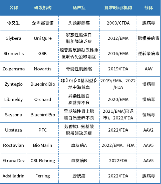 同时全球目前已有12款产品获批上市,详见表1。而除却多款已经上市的基因疗法药物,目前也有多款药物处于临床阶段,并且全球首例基于crispr基因编辑技术的药物exa-cel也即将获批上市。一花独开不是春,百花齐放春满园,期待基因疗法“百花齐放”的那一天。