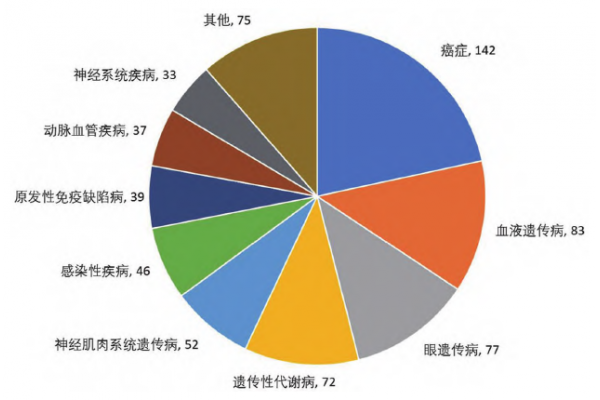 截至2023年1月,clinicaltrials.gov数据库收录了656项正在进行或已完成的基因治疗相关临床试验,多领域都可见基因疗法的身影,详见下图1。