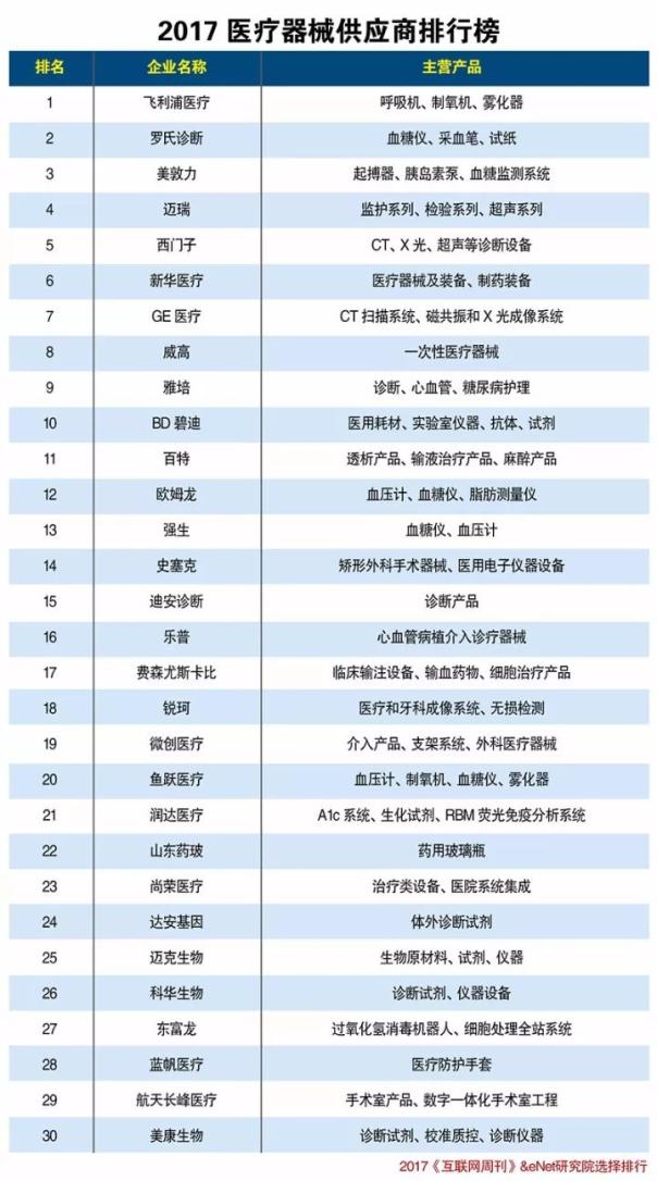 总体上而言,“enet&ciweek”的“2017中国医疗器械供应商排行榜”还是可以信赖的。