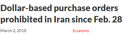 2015年1月伊朗半官方媒体tasnim就曾报道,伊朗央行当月25日宣布,将在与外国交易时停止用美元结算,在签订外贸合同时将使用人民币、欧元、土耳其里拉、俄罗斯卢布和韩元。2016年1月又传出同样的伊朗央行停止对外交易时用美元结算消息。