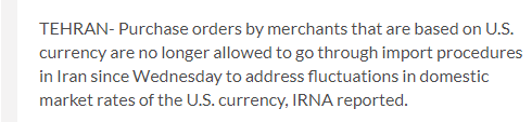 据伊朗官方irna通讯社报道,2月28日起,进口贸易中的采购订单不允许基于美元。此举响应了伊朗央行提出的正式请求,专为解决美元汇率波动。