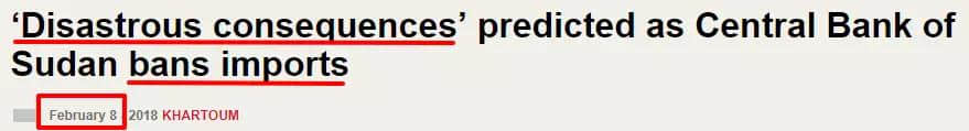 外媒报道:苏丹中央银行禁止进口,预计会造成“灾难性后果”
