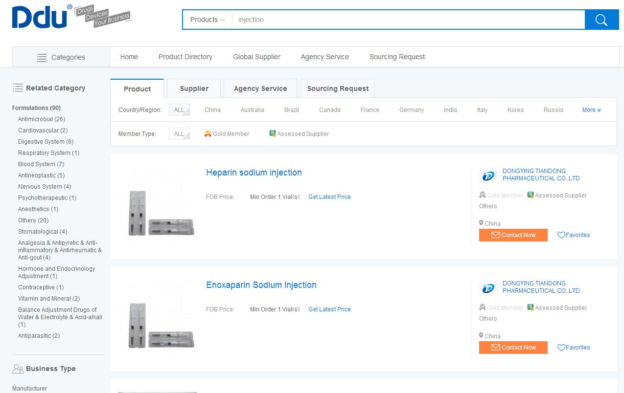 “在搜索上,我们比百度更懂医贸。”与百度的综合搜索不同,滴度的搜索针对医药行业,更精准。以“injection”这个关键词为例,injection的含义很广,用户在普通搜索引擎中看到的结果五花八门,但实际上用户的真正需求是医用注射剂,此时用户不得不采用更换或添加关键词的方式来查找自己想要的结果。而滴度精准搜索的出现,很好地解决了这一问题。