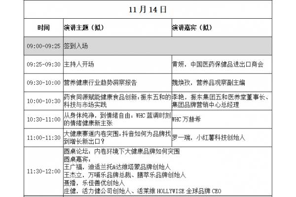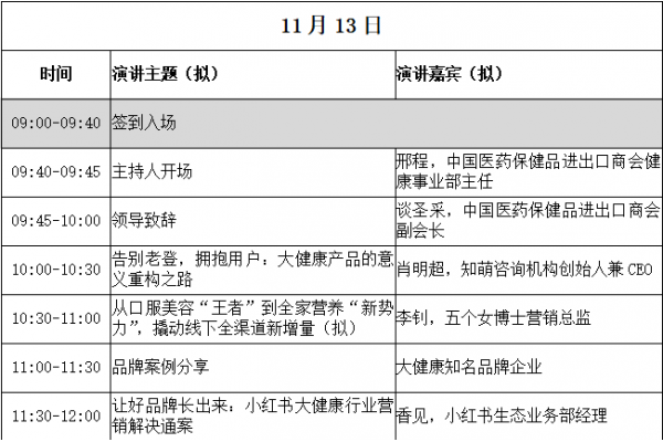 大会预计将汇聚营养保健食品行业品牌企业、生产企业、经销商、电商近千位参会观众,包括国内外知名健康保健品牌企业负责人、行业专家、生产企业管理层、经销商渠道负责人、电商平台代表、营养保健品领域从业人员等等。共同聚焦大健康行业发展趋势,分享行业经验,交流营销策略,深入探讨营养保健食品行业的新产品研发、市场营销、电商渠道拓展、品牌运营等方面的话题。