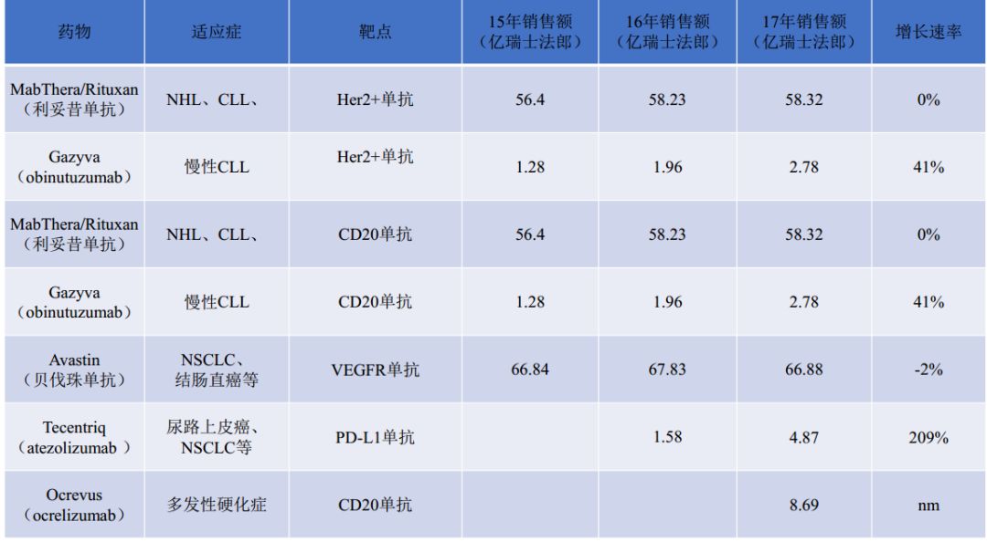 为了应对利妥昔单抗专利的危机,罗氏通过收购获得了利妥昔单抗的升级版药物gazyva。17年销售额2.78亿瑞士法郎,增幅达到41%。