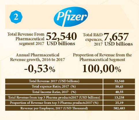 辉瑞,药企界一道标杆,因为各种收购为大家津津乐道。近些年来成绩斐然,17年制药行业收入为525.4亿美元。不过因为多个核心产品专利到期的问题,排名上落后于罗氏。