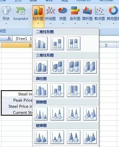 第三步:再点击插入,选择图表数据,比如柱形图: