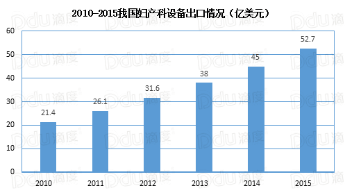 从我国妇产科设备五年间(2010-2015年)的发展历程来看,随着我国妇产科设备企业的崛起,我国妇产科设备出口有了较大的增长,虽然出口额较少,但相比以往有了较大的突破,市场前景非常广阔。
