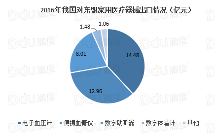 在效用与国外产品同步的情况下,部分国产产品以绝对的价格优势抢占了越来越多的市场。我国家用医疗器械除了小部分出口到美国、日本、德国等地区,其余大部分都出口到东盟。