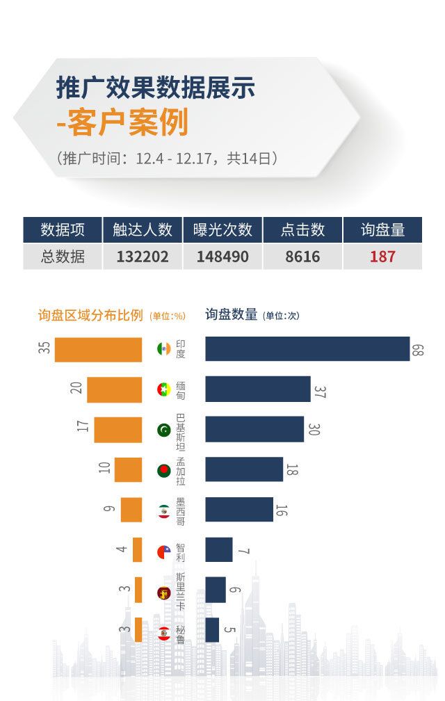 举个栗子,滴度标杆用户“深圳市迈高生物科技有限公司”的产品“肺活量计(spirometer)”率先体验了生意加速宝服务,在滴度、脸书、谷歌、领英、推特等10多种渠道投放广告,通过滴度的精准定向推广,14天收到187封询盘!!!