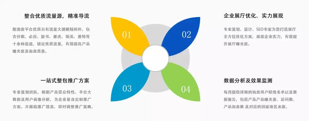 一站式整包推广,10多种优质渠道全面推广,滴度平台诚信背书,询盘效果实时动态监测…